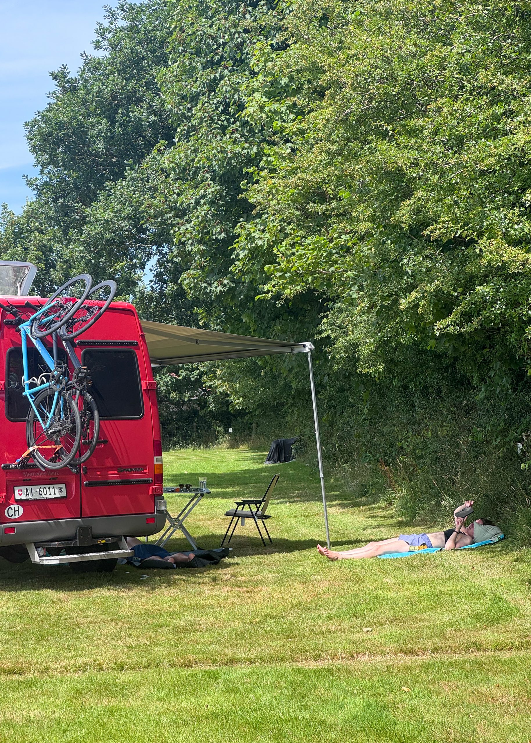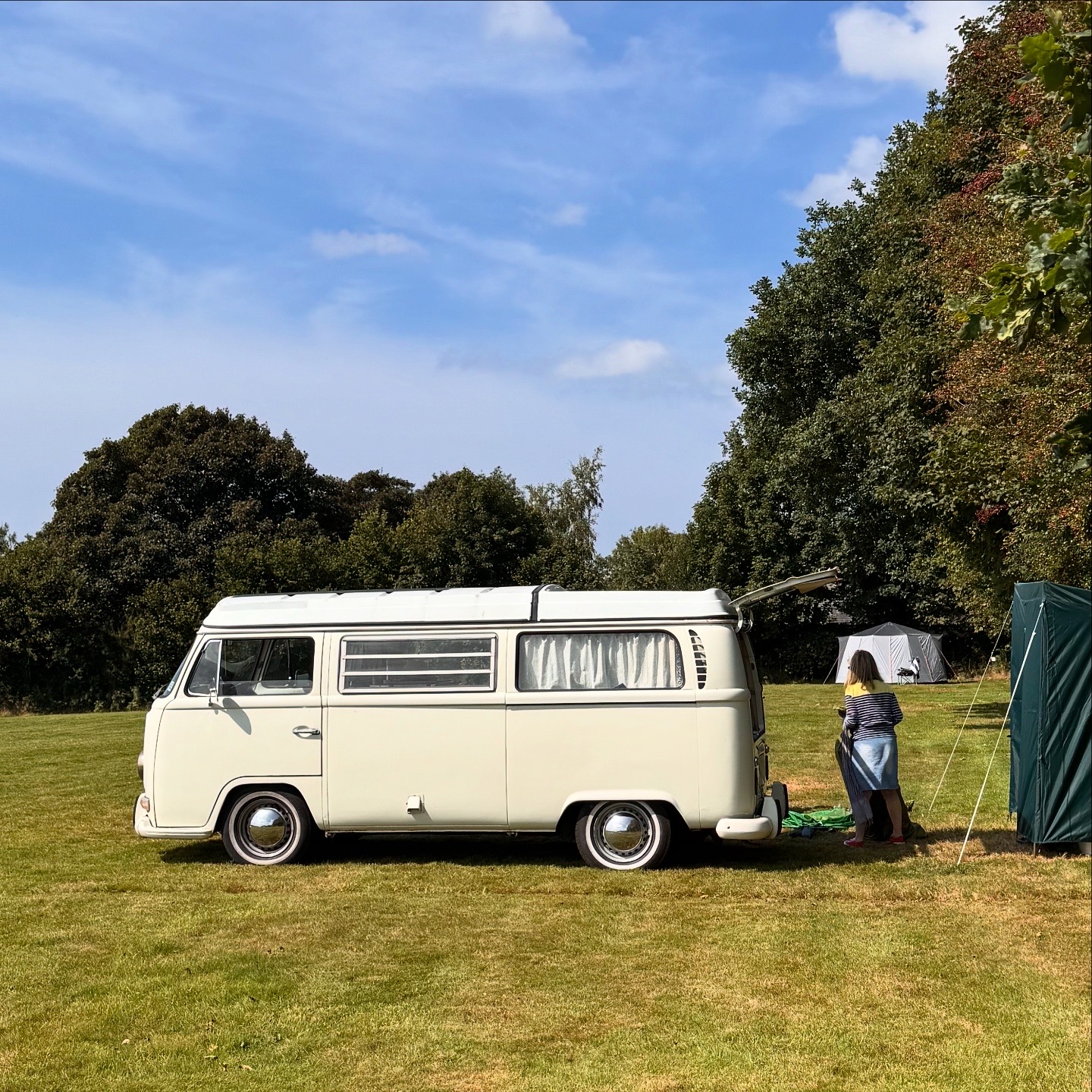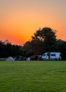 All of our pitches are large as standard, we don’t believe in cramping people in. You’ll also have access to our clean, well-maintained toilets, hot showers and washing-up area (just a short walk away), plus the onsite wood-fired sauna and our children’s play area. Well-behaved dogs are welcome — because they deserve a holiday too!